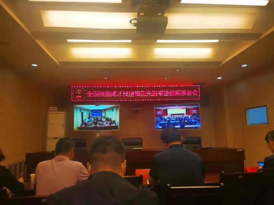 为深入贯彻落实习近平总书记对技能人才工作的重要指示和李克强总理批示精神,培养更多高素质技术技能人才、能工巧匠,大国工匠,弘扬工匠精神,提高技术技能人才社会地位。充分发挥世界技能大赛和全国技能大赛对推动技能人才队伍建设的引领示范作用,在全社会更好地营造尊重劳动,崇尚技能争当技能人才的良好氛围,组织召开此次会议。我校组织全体师生观看视频报告会。报告会上,历届世赛获奖金牌五名选手依次进行了先进事迹汇报。