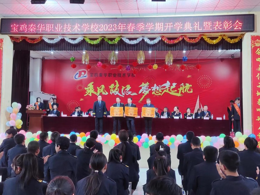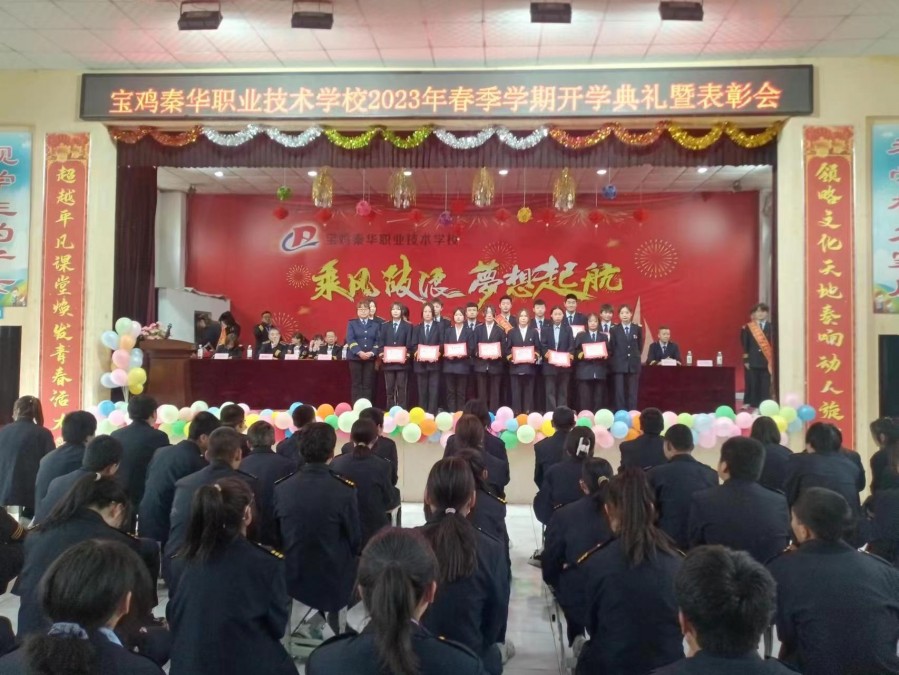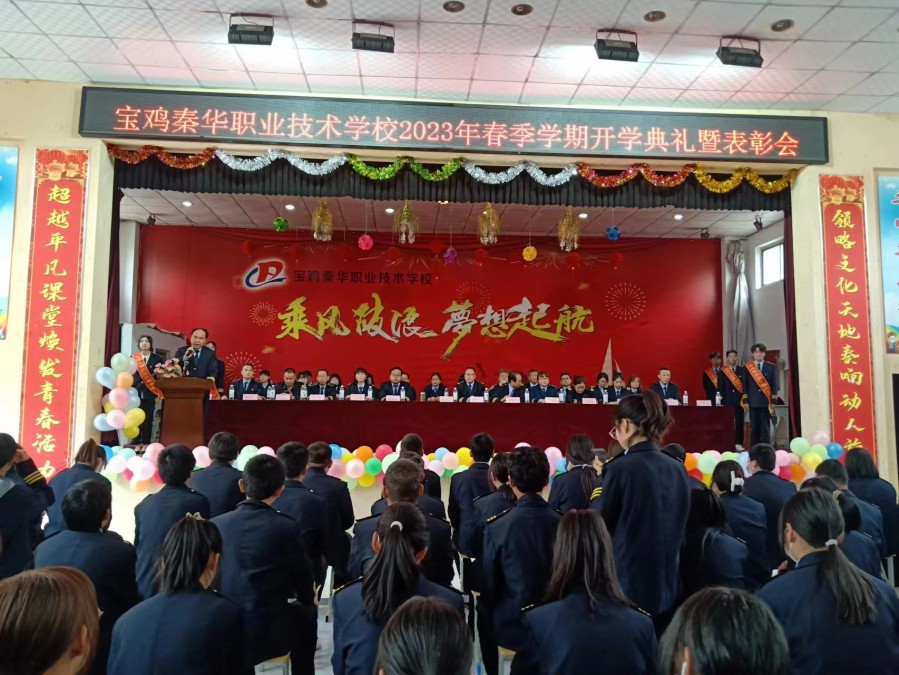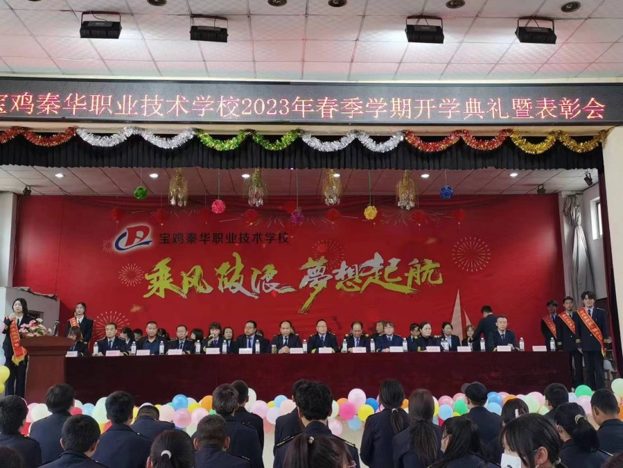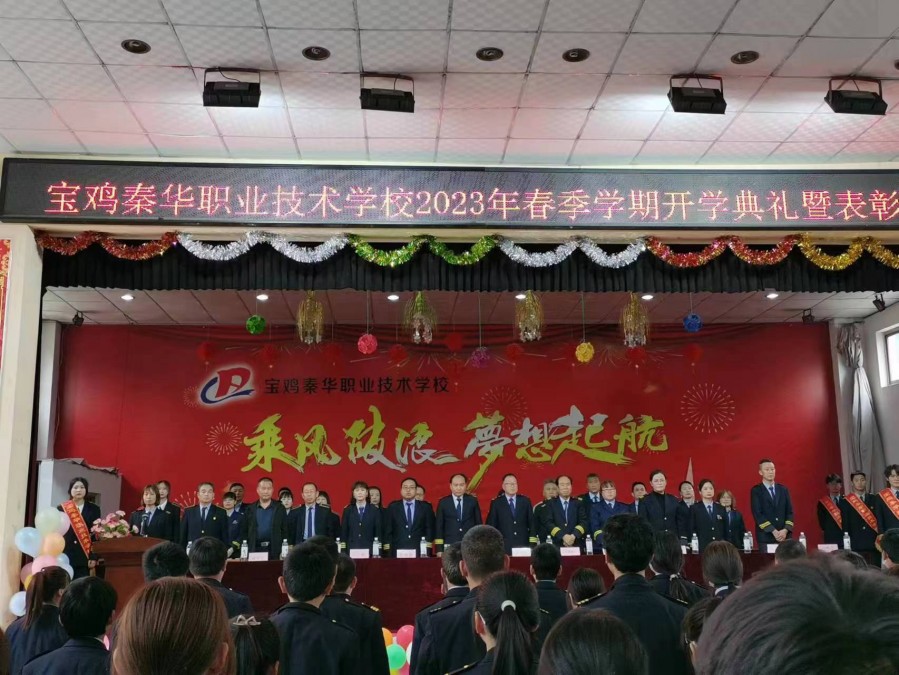 宝鸡秦华职业技术学校2023年春季开学典礼隆重举行 最美人间四月天,桃李争芳柳如烟。2023年4月27日下午,我校全体师生齐聚学校礼堂,隆重举行2023年春季学期开学典礼暨表彰大会。 宝鸡秦华职业技术学校校长杨伟军、校长助理助理蔺海强、党支部书记郑建堂、副校长王文靓、李多祥、常社勤及学校各部门领导出席了本次开学典礼,大会由王校长主持。 大会在庄严的国歌声中拉开序幕,同学们用铿锵有力的声音齐宣《秦华精神》,齐唱《秦华校歌》。新的学期我们斗志昂扬,新的学期我们信心满满!