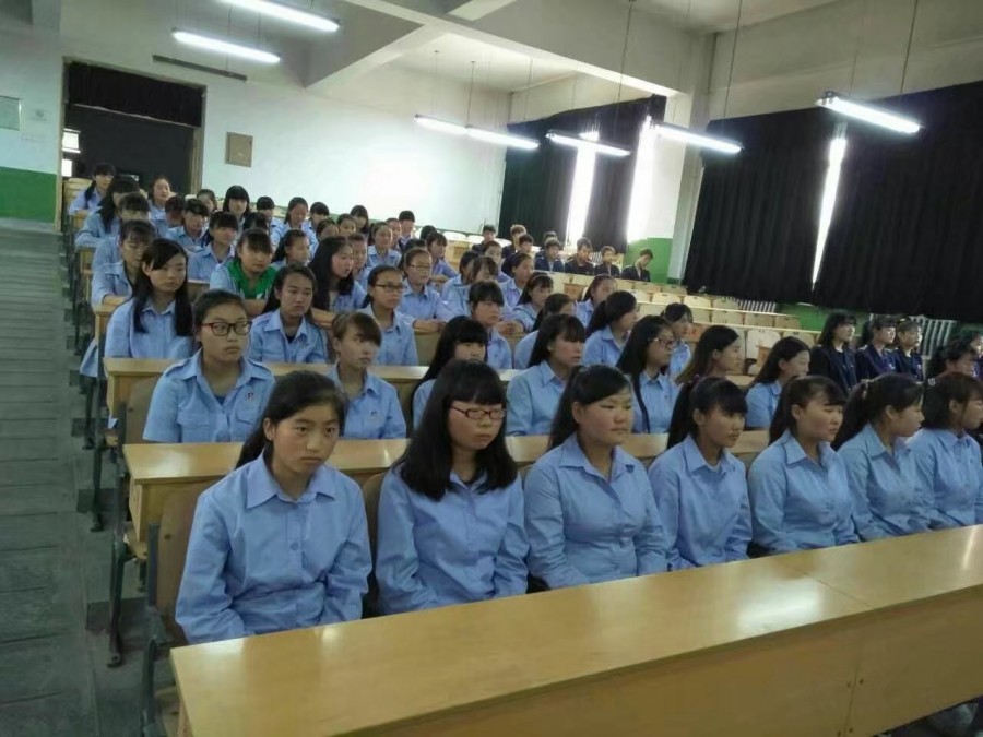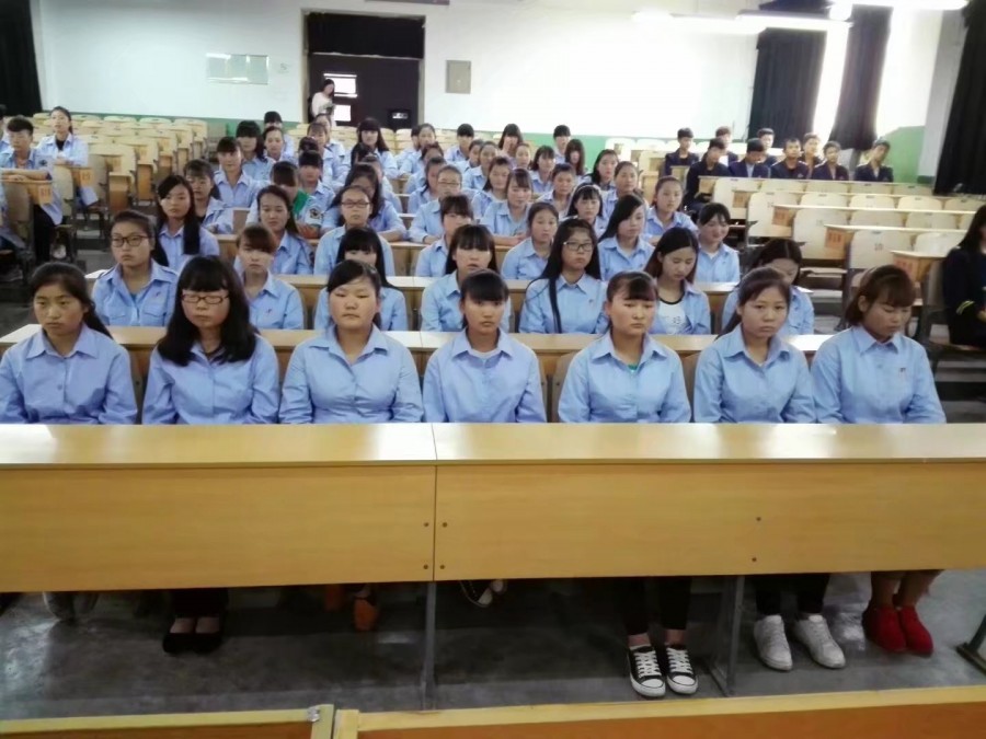 2017年春季138名新生在阶梯教室进行入校后新生思想教育课! |