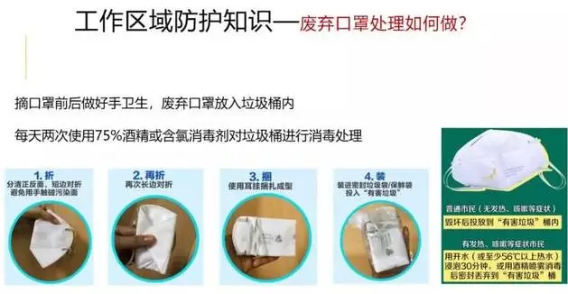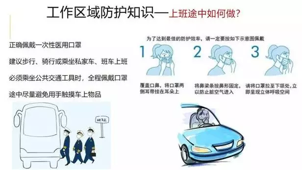给提前返岗同志的三点抗疫防护建议 关于很多与疫情防控无关的同志也要提前返岗的安排,这里不作咀嚼。既然已经返岗,请务必做好个人防护措施。然而提前返岗的第一天,相比口罩的紧缺,科学常识,防护意识更紧缺。 一、办公场所哪些是高危地带(戴口罩) 新型冠状病毒,主要通过空气中的飞沫进行传播。 空气不流通, 人员密度较大, 人员来往较频密的地方, 都是高危地区。 按危险程度: 1. 电梯间 2. 饭堂/餐厅 3. 办公室 办公室可能是最多人戴口罩, 然而,到了饭点,大家脱了口罩一起挤电梯聚餐去了。 …… 最高危:电梯间 电梯间是空气极其不流通的地方, 不要迷信那些“此处已消毒”的纸条。 只有一定浓度的酒精可以溶解冠状病毒外膜, 然而酒精是极其容易挥发的 除非每小时都安排专人对电梯间进行酒精消毒 否则,贴个已消毒的纸条纯粹自欺欺人 而且电梯间的危险是无形的 刚刚有人咳嗽或打了喷嚏后离开 你以为走进了空无一人的电梯间 实则充满了飞沫 包括你按电梯按钮的手指也沾满了飞沫。 建议: 1. 搭乘电梯一定要戴口罩。 2. 有条件的单位一定要频繁为电梯间消毒。 特别是按钮区。 次高危:饭堂/餐厅 挤满人排队打饭或就餐的区域, 是人流量最大,密度也最高的区域。 开玩笑说你要戴着口罩吃饭吗?是科盲。 建议: 1. 坐下吃饭的最后一刻才脱口罩。 2. 避免面对面就餐,避免就餐说话。 3. 避免扎堆就餐。 高危三:办公室 有人的地方,就有传染的风险。 建议: 1. 佩戴口罩,谈话保持适度距离 2. 随时保持良好通风 3. 对门把手,键盘鼠标,文具,桌面进行必要酒精消毒 二、勤洗手 勤洗手 勤洗手(重要三遍) 1. 到单位,第一时间洗手 2. 吃东西前,先洗手 3. 到过电梯间,饭堂高危区的,回来洗手 4. 外出回来,马上洗手 5. 要接触自己面部,特别是鼻孔与眼睛前,先洗手 三、科学的酒精消毒 像香水那样洒在自己身上是没有意义的。 关键是对我们手部会接触到的部位与物件进行消毒。 如手机,门把手,电梯按钮,鼠标键盘,自行车把手,工作证,文具,椅子等,各位看自己实际情况,进行甄别与重点消毒。 酒精要喷洒覆盖物件,自然晾干即可,不用擦拭。 重点提醒上述三点, 请各位结合其他权威科普宣传,做好防护。 二、个人防护知识(一)洗手篇 1、如何保护自己远离新型冠状病毒的肺炎传染? ①勤洗手。使用肥皂或洗手液并用流动水洗手,用一次性纸巾或干净毛巾 擦手。双手接触呼吸道分泌物后(如打喷嚏后)应立即洗手。 ②保持良好的呼吸道卫生习惯。咳嗽或打喷嚏时,用纸巾、毛巾等遮住口鼻,咳嗽或打喷嚏后洗手,避免用手触摸眼睛、鼻或口。 ③增强体质和免疫力。均衡饮食、适量运动、作息规律,避免产生过度疲劳。 ④保持环境清洁和通风。每天开窗通风数次不少于3次,每次20-30分钟。户外空气质量较差时,通风换气频次和时间应适当减少。 ⑤尽量减少到人群密集场所活动,避免接触呼吸道感染患者。 ⑥如出现呼吸道感染症状如咳嗽、流涕、发热等,应居家隔离休息,持续发热不退或症状加重时及早就医。 2、洗手在预防呼吸道传播疾病中的作用? 正确洗手是预防腹泻和呼吸道感染的最有效措施之一。国家疾病预防与控制中心、WHO及美国CDC 等权威机构均推荐用肥皂和清水(流水)充分洗手。 3、正确洗手需掌握六步洗手法: 第一步,双手手心相互搓洗(双手合十搓五下) 第二步,双手交叉搓洗手指缝(手心对手背,双手交叉相叠,左右手交换各搓洗五下) 第三步,手心对手心搓洗手指缝(手心相对十指交错,搓洗五下) 第四步,指尖搓洗手心,左右手相同(指尖放于手心相互搓洗搓五下) 第五步:一只手握住另一只手的拇指搓洗,左右手相同搓五下 第六步:弯曲手指使关节在另一手掌心旋转揉搓,交换进行各搓五下。 4、哪些时刻需要洗手? ①传递文件前后 ②在咳嗽或打喷嚏后 ③在制备食品之前、期间和之后 ④吃饭前 ⑤上厕所后 ⑥手脏时 ⑦在接触他人后⑧接触过动物之后⑨外出回来后 5、旅途在外没有清水,不方便洗手,怎么办? 可以使用含酒精消毒产品清洁双手。人冠状病毒不耐酸不耐碱,并且对有机溶剂和消毒剂敏感。75% 酒精可灭活病毒,所以达到一定浓度的含酒精消毒产品可以作为肥皂和流水洗手的替代方案。 (二)口罩篇 1、口罩该怎么选? 选择一:一次性医用口罩,连续佩戴4小时更换,污染或潮湿后立即更换; 选择二:N95医用防护口罩,连续佩戴4小时更换,污染或潮湿后立即更换。棉布口罩、海绵口罩均不推荐。 2、正确使用口罩 医用口罩的使用方法: ①口罩颜色深的是正面,正面应该朝外,而且医用口罩上还有鼻夹金属条。 ②正对脸部的应该是医用口罩的反面,也就是颜色比较浅的一面,除此之外,要注意带有金属条的部分应该在口罩的上方,不要戴反了。 ③分清楚口罩的正面、反面、上端、下端后,先将手洗干净,确定口罩是否正确之后,将两端的绳子挂在耳朵上。 ④最后一步,也是前面提到过的金属条问题,将口罩佩戴完毕后,需要用双手压紧鼻梁两侧的金属条,使口罩上端紧贴鼻梁,然后向下拉伸口罩,使口罩不留有褶皱,最好覆盖住鼻子和嘴巴。 3、特殊人群如何佩戴口罩? ①孕妇佩戴防护口罩,应注意结合自身条件,选择舒适性比较好的产品。 ②老年人及有心肺疾病慢性病患者佩戴后会造成不适感,甚至会加重原有病情,应寻求医生的专业指导。 ③儿童处在