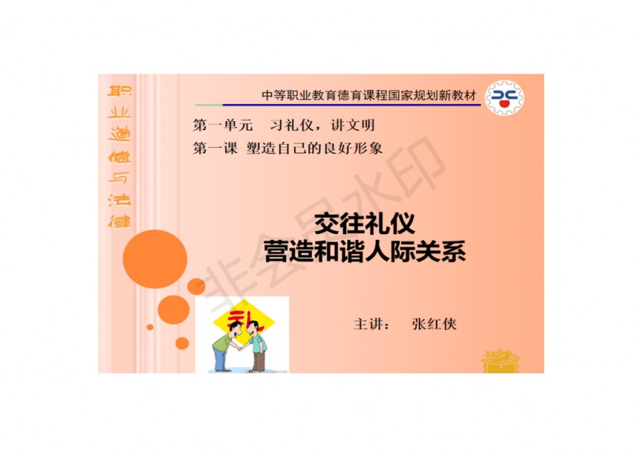 宝鸡秦华职业技术学校--第一章 职业道德与法律--张红侠老师