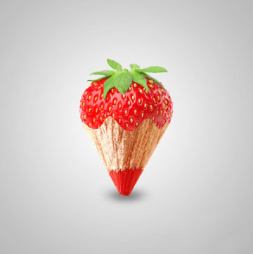 这种篇创意恶搞草莓铅笔教程简单易学,适合新手了解学习合成技巧, 主要是素材的运用和抠图两个技巧,分享给新手学习合成技巧吧。