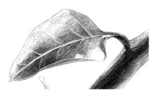 5、画出叶子最暗的部分。留出叶脉和高光。叶子底面的颜色可以比叶面黑,也可以比较浅, 就是不要一样的灰度。