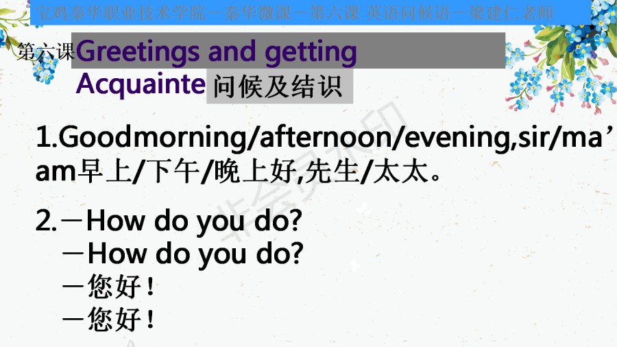 宝鸡秦华职业技术学校--秦华微课--英语 第六课 问候--梁建仁老师