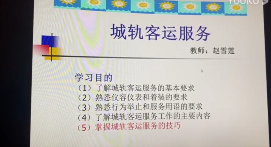 宝鸡秦华职业技术学校--秦华微课--服务礼仪 掌握城轨客运服务的技巧--赵雪莲老师 https://v.youku.com/v_show/id_XNDYzMjczMzg5Ng==.html?spm=a2h0c.8166622.PhoneSokuUgc_1.dtitle |