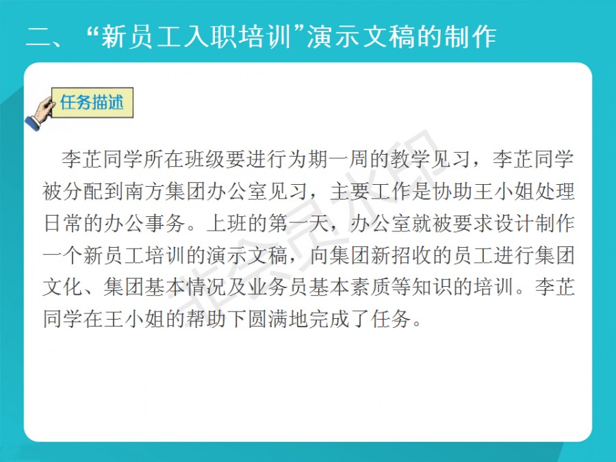 宝鸡秦华职业技术学校--秦华微课--计算机基础 “新员工入职培训”ppt演示文稿的制作--刘锟老师