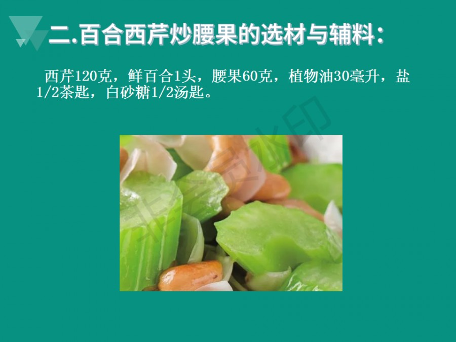 宝鸡秦华职业技术学校--秦华微课--烹饪 百合西芹炒腰果--张红侠老师