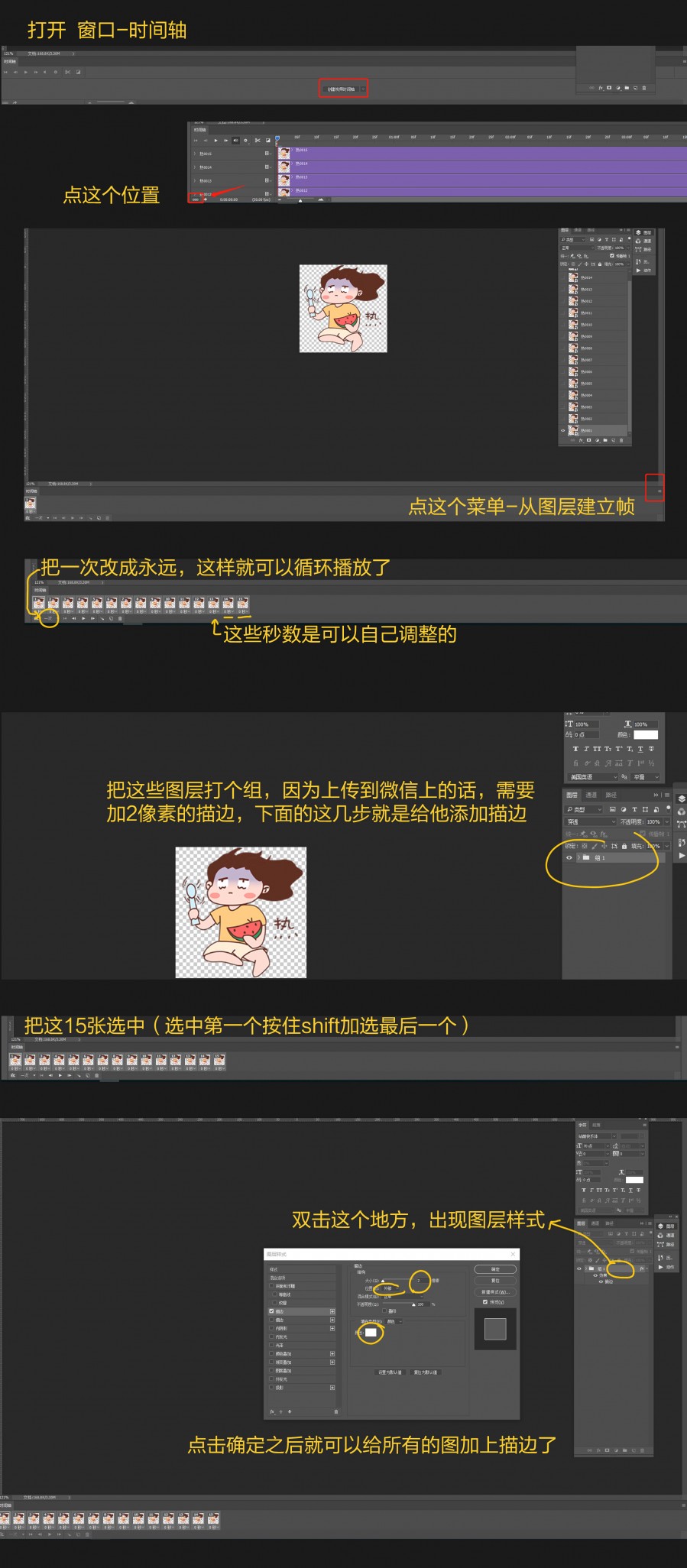 2.添加描边也是,我看教程里也是一帧一帧的加,按照我分享的这个步骤添加一次就可以了~